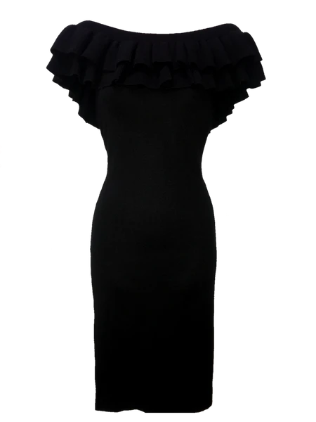The Yazzmin Knitted Pencil Dress is a super fun and sophisticated dress to celebrate any occasion. She’s a rib knitted pencil dress, with a double ruffle extending from her elasticated neckline – which can be worn on or off the shoulder depending on your mood! She’s a simple style that makes a statement, perfect for accessorising. Pair her with some of our jewellery and shoes for a classic date night Little Black Dress look