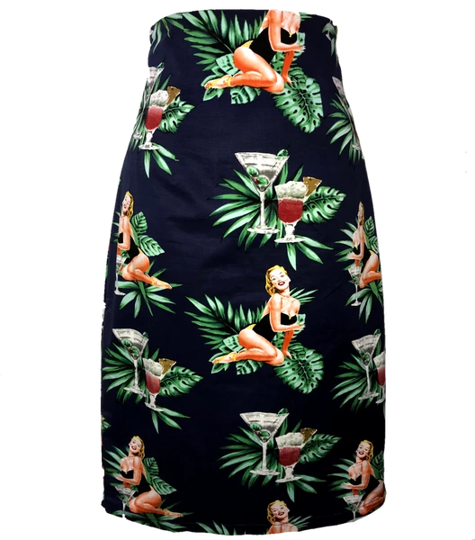 The Dolly and Dotty Falda Chic Pin Up pencil skirt creates a sophisticated 50’s style. Featuring a cheeky slit at the back, this flattering skirt is perfect for casual and evening wear. This perfect pinup girl skirt is fully lined, made from soft cotton with stretch and fastens at the centre back with a concealed zip. With a navy background and cute pin up print, this skirt is sure to become an instant favourite!