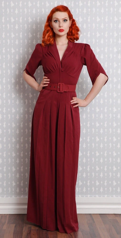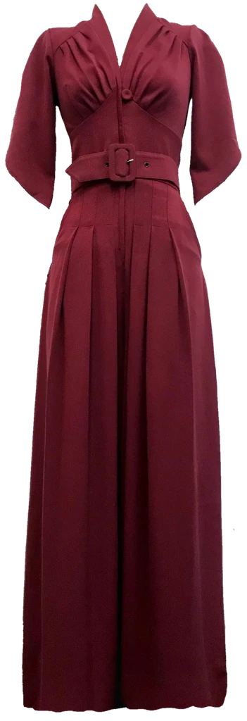 This stunning jumpsuit is a truly unique piece. With its pleated palazzo pants, tulip sleeves and gorgeous structural details, you will instantly have that old Hollywood feel, reminiscent of the 1930s and 40s. Made from a medium weight fabric, the Gigi Bo has a front zip, front and rear pockets and a fabric belt. Perfect for day or night time events.