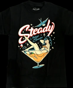 You’ll be singing a happier tune when you’re wearing this bowling shirt. The Diamond Note Button Up features three differently coloured diamond embroideries with a music note in the centre of each diamond. The bottom of the diamonds trail down in a classic look. The shirt also features a functional breast pocket. Available in Black.