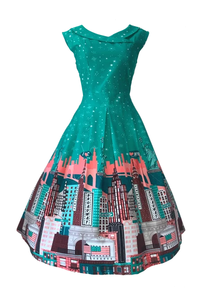 From 5th Ave. to Lady Liberty, transport yourself to the fashion and art capital of the world in the I ❤️ New York border print dress from the Calista collection by Vanessa Tong!